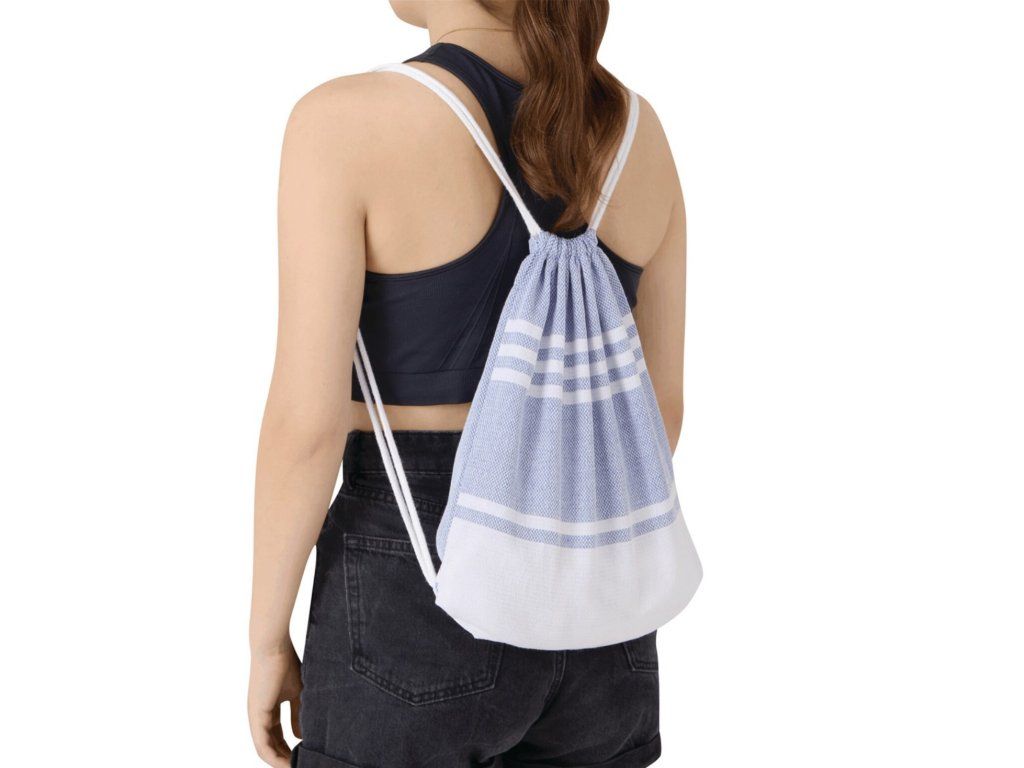 Ideální na dovolenou, k vodě, na piknik nebo jen tak na letní chill. Vak pohodlně unese osušku i další nezbytnosti a díky stahování na šňůrky se snadno nosí na zádech.