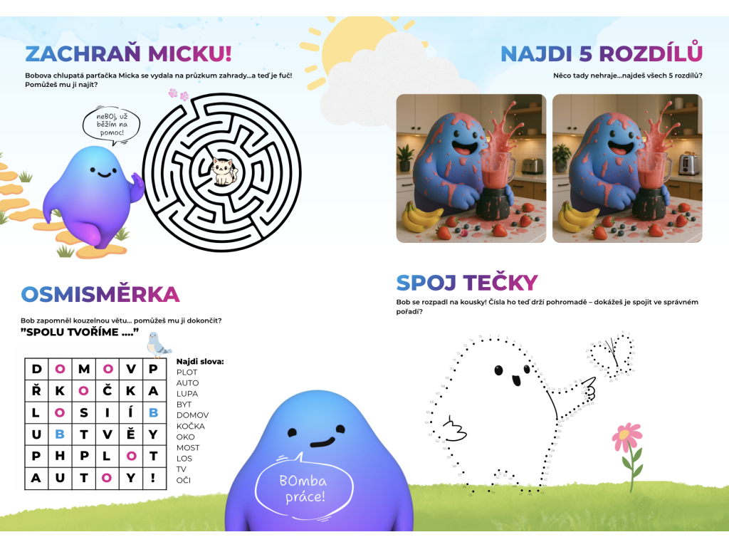 Tyto hrací karty plné úkolů, hádanek a kreativních aktivit zpříjemní čas dětem na pobočce i na firemních akcích. Zabaví, rozvíjí a zároveň hravou formou představují svět BO. Ideální doplněk pro každou příležitost, kde chcete vykouzlit úsměv 😊
